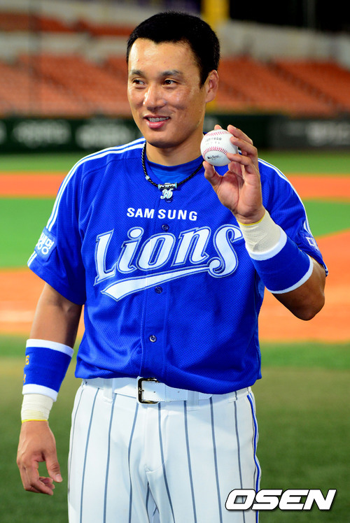 경기 종료 후 삼성 이승엽이 한일 통산 500홈런 볼을 들고 기념촬영을 하고 있다. / youngrae@osen.co.kr