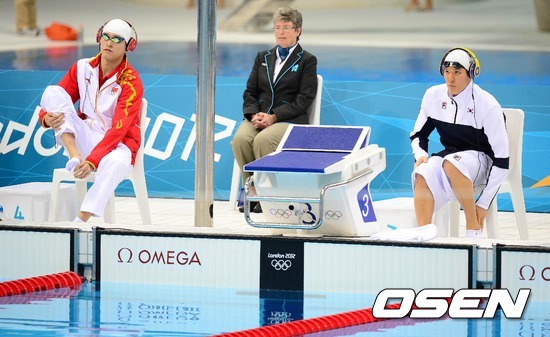 박태환과 쑨양이 입수에 압서 몸을 풀고 있다. /jpnews@osen.co.kr
