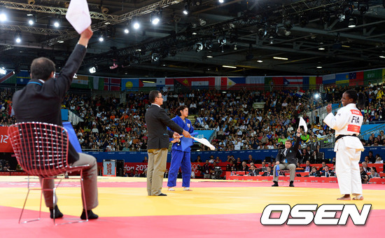 승부를 연장 골든 스코어까지 이어 온 정다운은 에망의 등 뒤를 잡은 뒤 다리 기술로 연결 동작을 들어가며 공격에 적극적인 모습을 보였다. 문제는 득점이었다. 정다운은 계속된 공세 속에서 득점으로 인정받는 기술을 사용하지 못했다. / jpnews@osen.co.kr