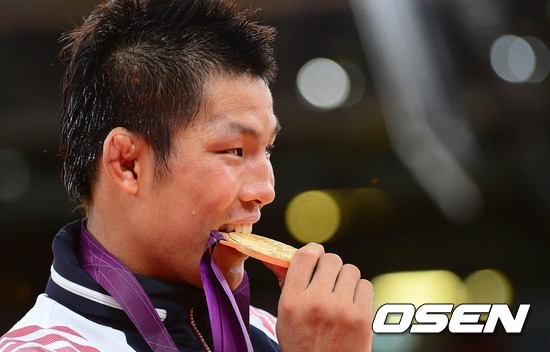 김재범이 금메달을 깨물고 있다. / jpnews@osen.co.kr