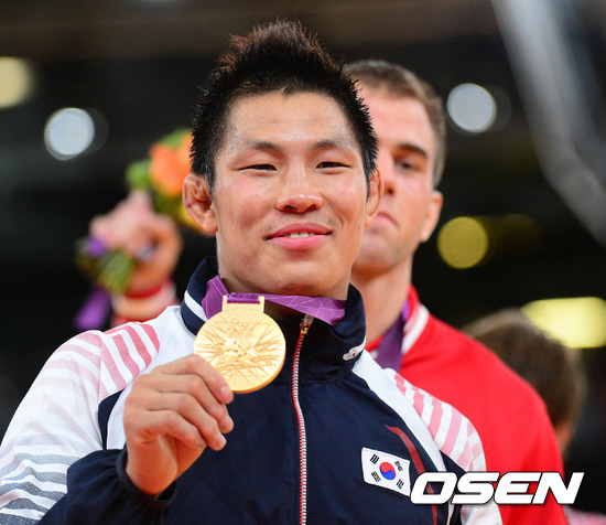 세계랭킹 1위 김재범은 1일(한국시간) 새벽 영국 런던 엑셀 노스 아레나2에서 열린 남자 유도 81㎏급 결승전서 올레 비쇼프(독일)에게 유효 2개를 따내며 그토록 고대하던 금메달을 목에 걸었다.