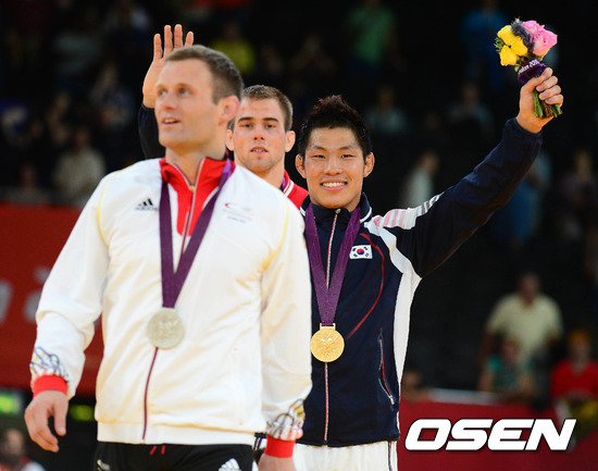 세계랭킹 1위 김재범은 1일(한국시간) 새벽 영국 런던 엑셀 노스 아레나2에서 열린 남자 유도 81㎏급 결승전서 올레 비쇼프(독일)에게 유효 2개를 따내며 그토록 고대하던 금메달을 목에 걸었다.