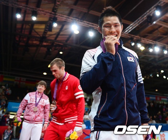 김재범은 31일(이하 한국시간) 영국 런던의 엑셀 런던에 위치한 올림픽 유도경기장서 열린 '2012 런던 올림픽 유도' 남자 81kg 이하급 결승전에서 올레 비숍(32, 독일)