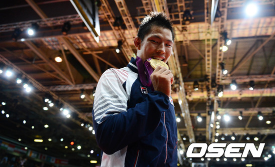 세계랭킹 1위 김재범은 1일(한국시간) 새벽 영국 런던 엑셀 노스 아레나2에서 열린 남자 유도 81㎏급 결승전서 올레 비쇼프(독일)에게 유효 2개를 따내며 그토록 고대하던 금메달을 목에 걸었다.