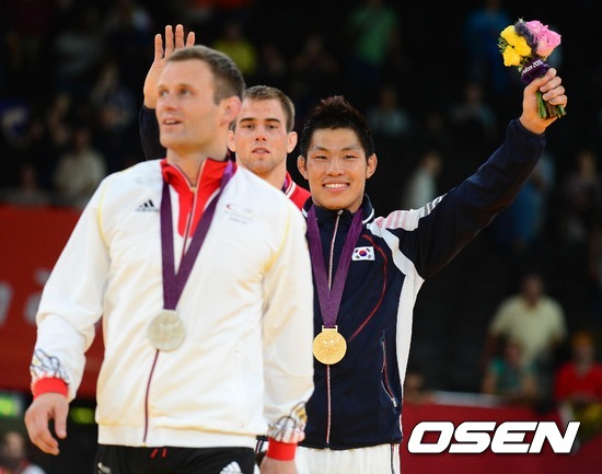 김재범은 31일(이하 한국시간) 영국 런던의 엑셀 런던에 위치한 올림픽 유도경기장서 열린 '2012 런던 올림픽 유도' 남자 81kg 이하급 결승전에서 올레 비숍(32, 독일)