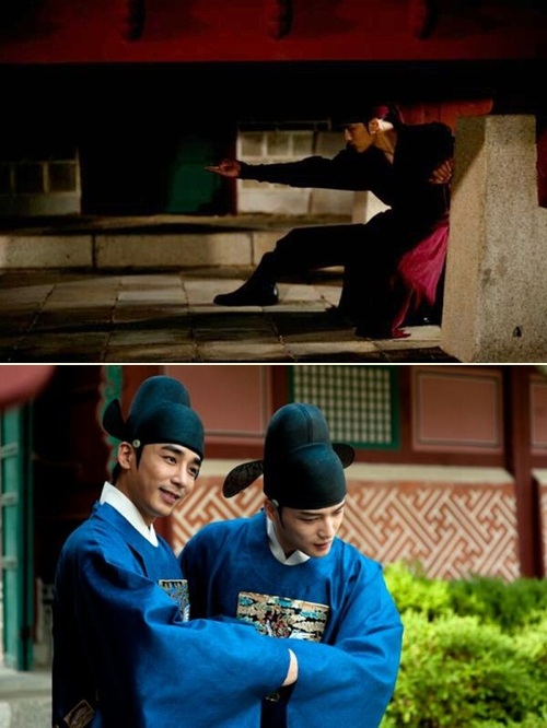 공개된 사진들에는 건물 외벽에 의지해 스파이더맨처럼 거미줄을 쏘는 동작을 선보이고 있는 김재중의 모습과 극중 '탁휘커플'로 불리는 경탁(김재중 분), 영휘(진이한 분)가 두 손을 맞잡고 있는 모습이 담겼다.