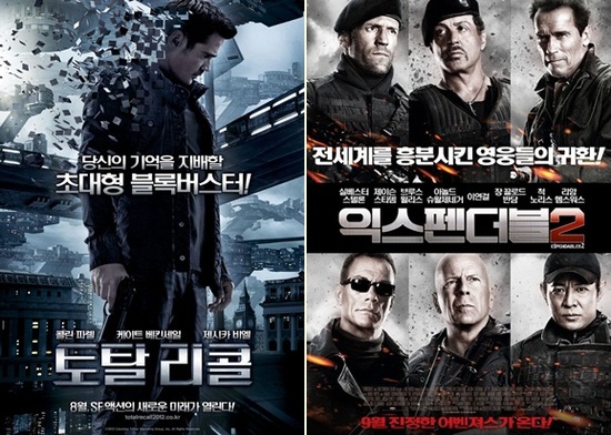 영화 '토탈 리콜'의 콜린 파렐과 '익스펜더블2'의 아놀드 슈왈제네거가 흥행 대결을 펼친다.