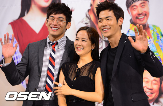 1일 오후 서울 논현동 임피리얼 팰리스 호텔에서 진행된 KBS 새 월화드라마 '해운대 연인들'(극본 황은경 / 연출 송현욱)의 제작발표회에서 정석원과 조여정, 김강우가 포즈를 취하고 있다
