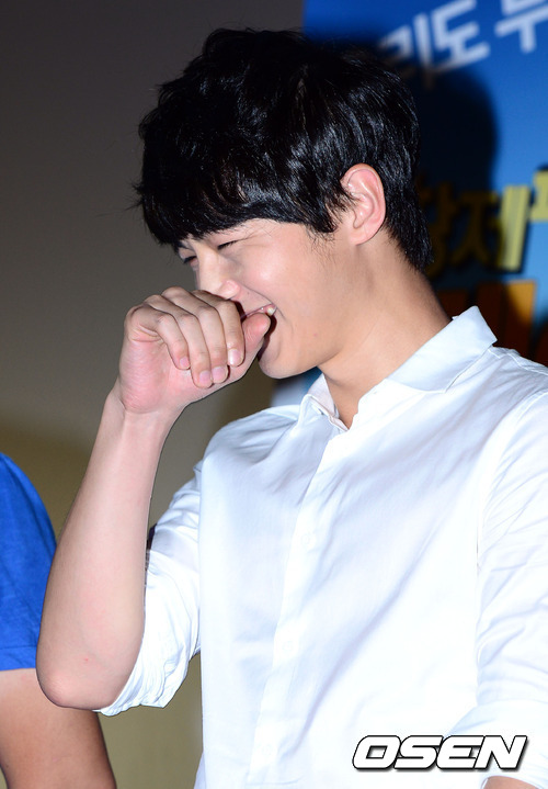 1일 오후 동대문 메가박스에서 진행된 MBC 다큐멘터리 '남극의 눈물' 영화판 '황제펭귄 펭이와 솜이' 언론배급 시사회에서 송중기가 김진마 PD의 이야기에 미소를 짓고 있다.