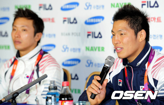 [OSEN=런던(영국), 올림픽공동취재단] 1일(한국시간) 영국 런던의 한국올림픽국가대표단 숙소 '팀 코리아 하우스'에서 4년 만에 금메달 재도전에 성공한 김재범(27, 한국마사회)과 남자 플뢰레 개인전서 세 번의 올림픽 도전 끝에 동메달을 목에 건 '오뚝이 검객' 최병철(31, 화성시청, 세계랭킹 6위)이 기자회견을 가졌다.