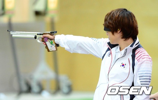 '여자 사격 유망주' 김장미(20, 부산시청)가 여자 25m 권총 예선에서 올림픽 신기록을 세우며 1위로 결선에 진출했다.