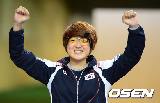 김장미는 사격 여자 25m 권총 결선에서 합계 792.4점(예선 591점+결선 201.4점)으로 금메달을 목에 걸었다. 이날 김장미가 따낸 금메달은 '한국 사격의 간판' 진종오에 이은 두 번째 사격 금메달이자 1992 바르셀로나 올림픽 여자 10m 공기 소총의 여갑순 이후 20년 만의 첫 여자 사격 금메달이다. / jpnews@osen.co.kr