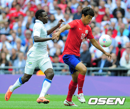 [OSEN=런던(영국), 올림픽공동취재단] 2일(한국시간) 새벽 영국 런던 웸블리 스타디움에서 벌어진 2012런던올림픽 남자축구 조별리그 B조 최종전 가봉과의 경기, 전반 대한민국 박주영이 가봉의 수비를 돌파하고 있다.