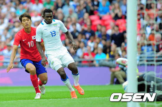 [OSEN=런던(영국), 올림픽공동취재단] 2일(한국시간) 새벽 영국 런던 웸블리 스타디움에서 벌어진 2012런던올림픽 남자축구 조별리그 B조 최종전 가봉과의 경기, 전반 슛을 시도한 대한민국 박주영이 공을 바라보고 있다.