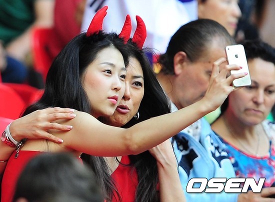 [OSEN=런던(영국), 올림픽공동취재단] 2일(한국시간) 새벽 영국 런던 웸블리 스타디움에서 벌어진 2012런던올림픽 남자축구 조별리그 B조 최종전 가봉과의 경기 전 한국 응원단이 셀카를 찍고 있다.