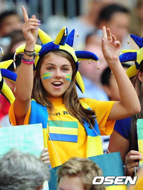 [OSEN=런던(영국), 올림픽공동취재단] 2일(한국시간) 새벽 영국 런던 웸블리 스타디움에서 벌어진 2012런던올림픽 남자축구 조별리그 B조 최종전 가봉과의 경기 전 외국 미녀가 열띤 응원을 하고 있다.