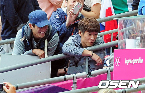 [OSEN=런던(영국), 올림픽공동취재단] 2일(한국시간) 새벽 영국 런던 웸블리 스타디움에서 벌어진 2012런던올림픽 남자축구 조별리그 B조 최종전 가봉과의 경기, 경기장을 방문한 이청용과 박지성이 경기를 바라보고 있다.