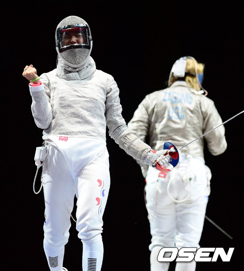 김지연은 2일(한국시간) 영국 런던 엑셀 사우스 아레나에서 열린 펜싱 여자 사브르 준결승전에서 마리엘 자구니스(미국)에게 15-14 역전승을 거뒀다.
