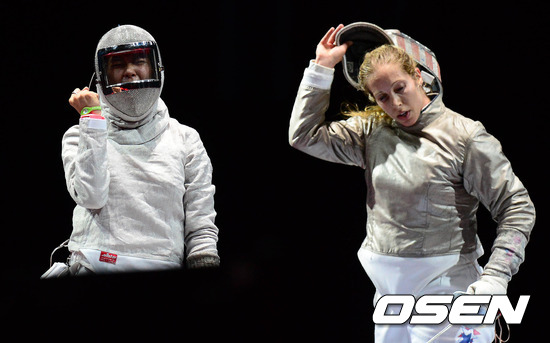 김지연은 2일(한국시간) 영국 런던 엑셀 사우스 아레나에서 열린 펜싱 여자 사브르 준결승전에서 마리엘 자구니스(미국)에게 15-14 역전승을 거뒀다.