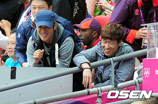 캐주얼한 평상복 차림으로 경기장을 찾은 박지성과 이청용은 관중들 틈에 섞여 경기를 지켜봤다. 이미 국가대표를 은퇴한 박지성과 부상 여파로 인해 와일드카드에서 제외됐던 이청용은 자신들이 뛰고 있는 영국 무대에서 새로운 도전을 시작할 태극전사들을 위해 경기 내내 응원을 아끼지 않았다.