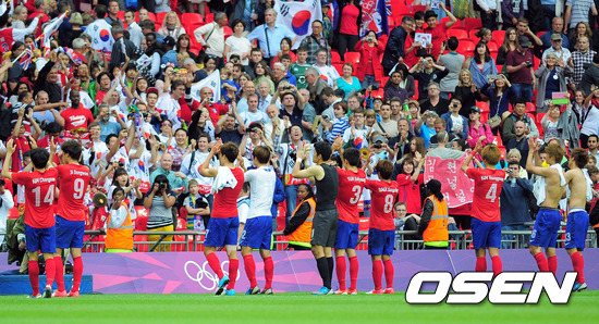 홍명보 감독이 이끄는 한국 올림픽대표팀은 2일(한국시간) 새벽 영국 런던 웸블리 스타디움에서 열린 2012런던올림픽 남자축구 조별리그 B조 최종전 가봉과 경기서 0-0 무승부를 거뒀다. 이날 경기서 비긴 한국은 1승2무(승점 5)를 기록하며 스위스에 승리를 거둔 멕시코(2승1무, 승점 7)에 이어 조 2위로 8강 진출을 확정지었다.