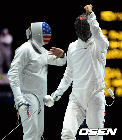 정진선은 2일(한국시간) 영국 런던 엑셀 사우스 아레나에서 열린 2012 런던올림픽 남자 펜싱 에페 동메달 결정전에서 시스 켈시(미국)에 12-11로 승리했다.