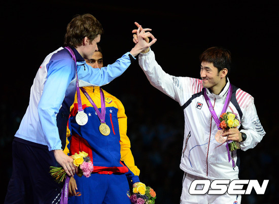정진선은 2일(한국시간) 영국 런던 엑셀 사우스 아레나에서 열린 2012 런던올림픽 남자 펜싱 에페 동메달 결정전에서 시스 켈시(미국)에 12-11로 승리했다.