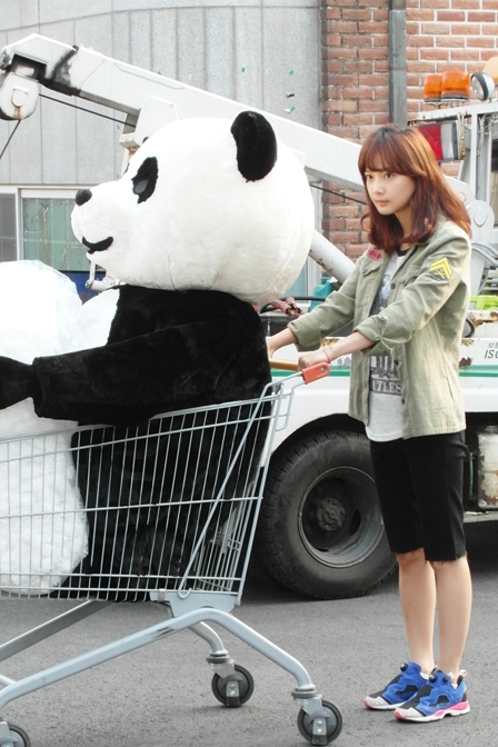 사진 속에 윤승아는 커다란 마트용 카트에 자신의 몸집보다 더 커 보이는 판다 인형을 넣고 마치 배달을 가듯 인형을 끌고 가고 있다. 이 장면은 극중 매출 빵원의 케이크 가게 ‘카페 판다’의 주인인 판다양(윤승아 분)이 카페 홍보를 위한 판다곰 인형 옷을 사서 끌고 가고 있는 모습으로 인형도 울고 갈 귀여운 표정으로 사랑스러운 매력을 뽐내고 있다.
