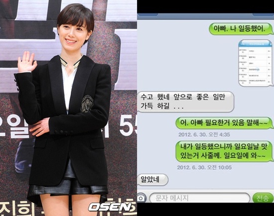 구혜선은 2일 오전 자신의 트위터에 "새벽에 아버지랑 주고 받은 문자를 다시 읽어보다 너무 재밌어서 공개해 봅니다. 딸이 학교에서 일등했다는데 남일 처럼 말씀하시는 우리 아버지" 라는 글과 함께 사진을 게재했다.