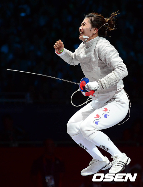 김지연은 2일(한국시간) 영국 런던 엑셀 사우스 아레나에서 열린 펜싱 여자 사브르 결승전서 소프야 베리카야(러시아)를 15-9 로 가볍게 물리치고 2000년 시드니올림픽(김영호, 남자 플뢰레) 이후 한국 펜싱에 감격의 두 번째 금메달을 안겼다.