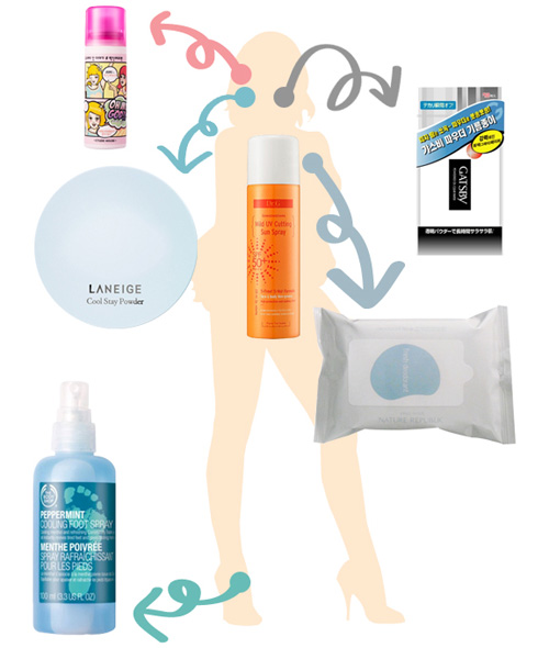 평년 기온을 웃도는 폭염이 지속되면서 신체 부위별로 땀과 피지 발생을 억제시키는 제품이 바캉스 필수품으로 떠오르고 있다.