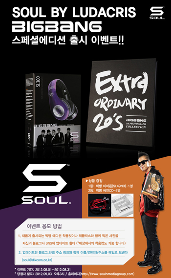 이번 이벤트는 빅뱅 팝컬러 에디션을 착용한 착용 컷이나, 제품 박스와 함께 찍은 사진을 자신의 블로그 또는 SNS에 업데이트하면 이벤트에 응모 할 수 있다. 추첨을 통해 1등에게는 ‘빅뱅 에디션 이어폰’을 2등 2명에게는 ‘빅뱅 싸인 CD’가 제공된다.