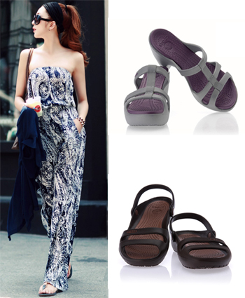 ▲ 수영복 같은 점프슈트는 젤리슈즈, 누드 힐과 함께 신어야