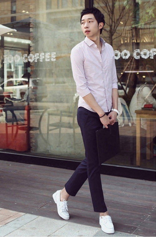 이렇게 발목이 드러나는 면바지는 ‘치노 팬츠’라고도 불리는데, TV 드라마의 인기 남자주인공들인 공유, 이희준, 이종혁 등도 이런 스타일을 계속 선보이면서 유행을 확실히 굳혔다.