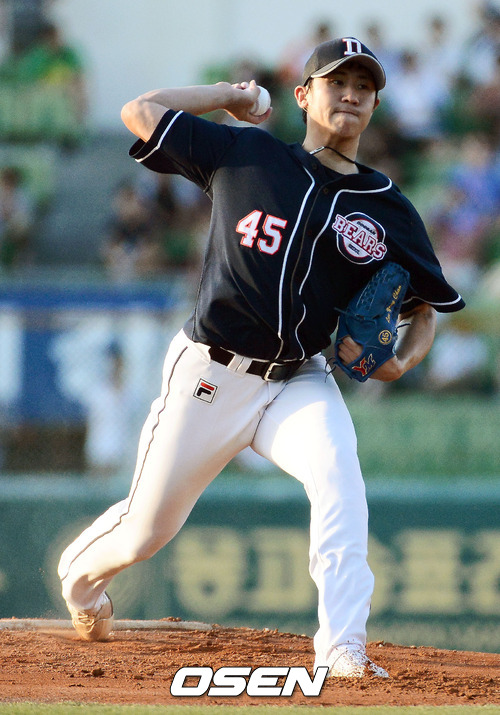 2일 대구구장에서 열린 '2012 팔도 프로야구' 삼성 라이온즈와 두산 베어스 경기 두산 선발 이용찬이 공을 뿌리고 있다.