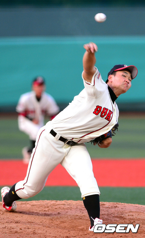 2일 오후 서울 목동구장에서 열린 '제67회 청룡기 전국 고교야구선수권대회 겸 주말리그 후반기 왕중왕전' 덕수고와 신일고의 결승전 경기, 덕수고 한주성이 역투하고 있다.