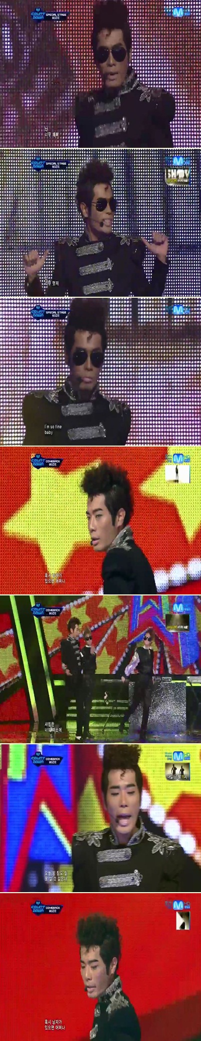 이날 뮤지는 마이클잭슨의 트레이드마크인 제복 의상과 선글라스를 착용한 채 DJ 콘셉트로 무대에 등장, '쏘 핫'과 '하루하루'를 짧게 열창한 뒤 신곡 '첫 눈에 반했어'의 무대를 이어갔다.
