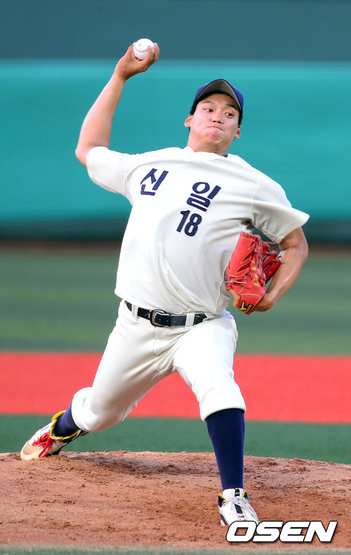 2일 오후 서울 목동구장에서 열린 '제67회 청룡기 전국 고교야구선수권대회 겸 주말리그 후반기 왕중왕전' 덕수고와 신일고의 결승전 경기, 신일고 이윤학이 역투하고 있다.
