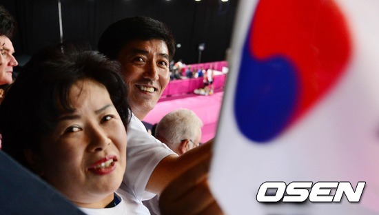 이용대 부모가 태극기를 흔들며 아들을 응원하고 있다. /jpnews@osen.co.kr