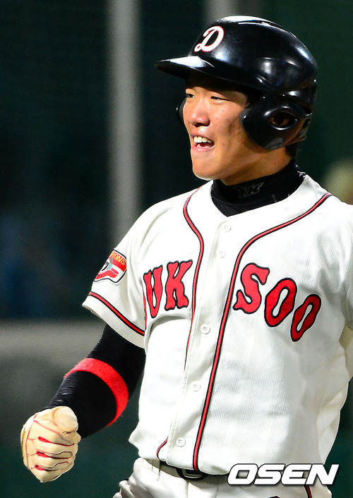 2일 오후 서울 목동구장에서 열린 '제67회 청룡기 전국 고교야구선수권대회 겸 주말리그 후반기 왕중왕전' 덕수고와 신일고의 결승전 경기, 7회말 1사 3루 덕수고 김하민의 스퀴즈 번트로 3루 주자 이정호가 홈을 밟은뒤 기뻐하고 있다.
