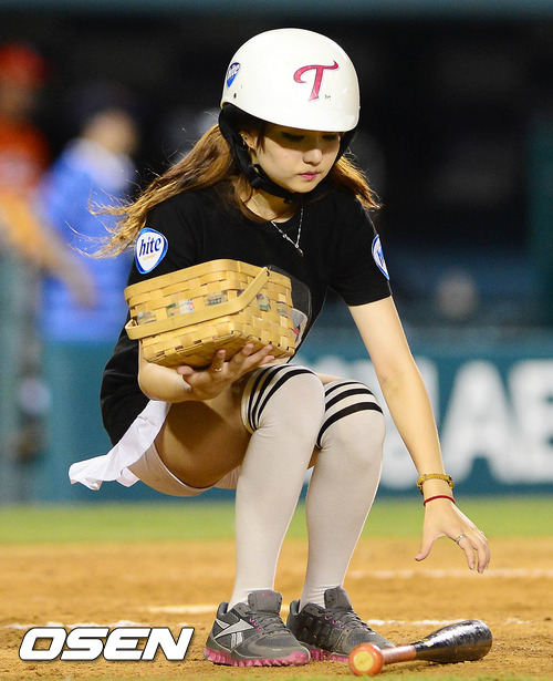 2일 오후 서울 잠실구장에서 열린 '2012 팔도 프로야구' LG 트윈스와 한화 이글스의 경기, 배트걸이 타석에 있는 배트를 줍고 있다.
