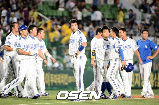 홈 3연패를 당한 삼성라이온즈 선수들이 팬들에게 인사를 하기위해 그라운드에 오르고 있다. / ajyoung@osen.co.kr