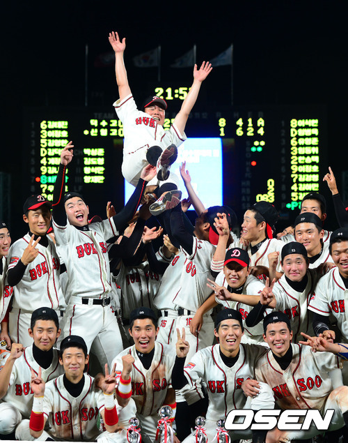 경기 종료 후 덕수고 선수들이 정윤진 감독을 헹가래 치고 있다. / youngrae@osen.co.kr