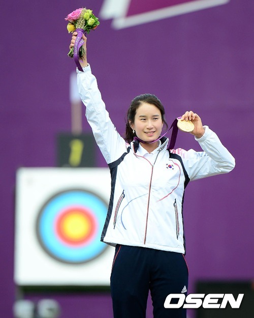 ‘한국 여자 양궁의 간판’ 기보배(24, 광주광역시청, 세계랭킹 2위)가 2일(한국시간) 영국 런던 로즈 크리켓 그라운드에서 벌어진 2012런던올림픽 양궁 여자 개인전 결승에서 멕시코의 강호 아이다 로만(세계랭킹 13위)을 슛오프까지 접전 끝에 꺾고 감격의 금메달을 목에 걸었다.