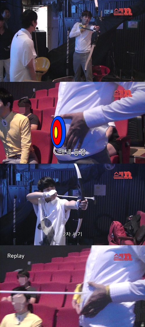 시완은 진지하게 활 시위를 당기고, 광희의 배를 과녁 삼아 명중시켜 웃음을 자아냈다. 특히 광희의 배 과녁을 명중시키는 장면에서는 실제 올림픽 양궁 경기의 해설 음성이 가미돼 실감난 양궁 경기의 분위기를 자아냈다.