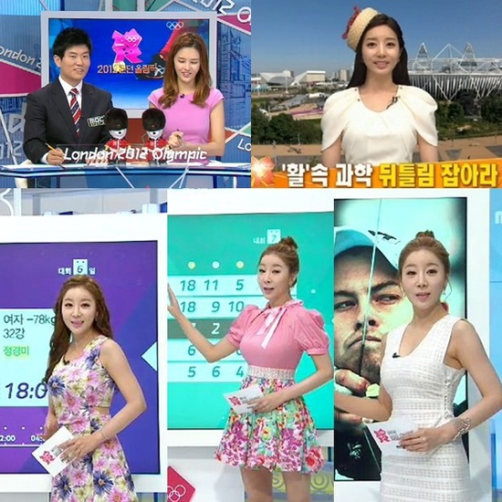 김주하 아나운서는 2004년 아테나 올림픽 당시 그리스 신전을 배경으로 여신 콘셉트의 의상을, 방현주는 2008년 베이징 올림픽 때 치파오를 변형한 의상을 착용했다. 그러나 런던올림픽스에서 양승은 아나운서의 의상은 매번 논란의 대상으로 떠올라 시청자들로부터 비난의 화살을 받고 있다.