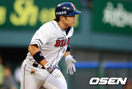 3일 오후 서울 잠실야구장에서 열린 '2012 팔도 프로야구' 두산 베어스와 KIA 타이거즈의 경기, 3회초 2사 2루 두산 윤석민이 좌중간 적시 2루타를 치고 진루하고 있다.