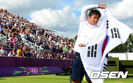 하지만 오진혁은 그런 부담감을 모두 이겨내고 본인의 첫 올림픽 출전이었던 런던에서 보란듯이 금빛 활시위를 쏘며 단체전서 이루지 못한 값진 금메달을 목에 걸었다./ jpnews@osen.co.kr