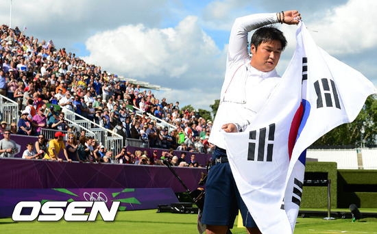 남자 양궁 대표팀의 '맏형' 오진혁(31, 현대제철)이 뜻깊은 금메달을 따냈다.