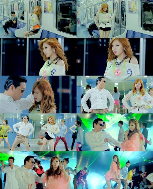 '강남스타일'의 뮤직비디오가 열풍을 일으키고 있는 또 하나의 요인으론 화려한 카메오 군단이 꼽힌다. 특히 포미닛으로 한류열풍을 타고 있는 현아와 SBS 예능프로그램 '일요일이 좋다-런닝맨'을 비롯, 여러 프로그램으로 해외 팬을 만나는 국민MC 유재석 등 기존 한류열풍 스타들이 '강남스타일' 뮤직비디오의 인지도를 올리며 제 몫을 톡톡히 해내고 있는 것.